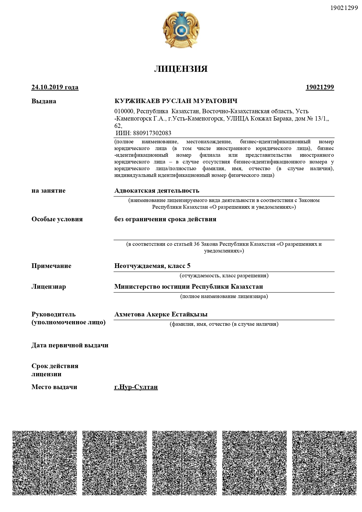 Меня зовут Куржикаев Руслан. Я работаю адвокатом в городе Астане. В своей деятельности специализируюсь на защите прав граждан по общеуголовным, коррупционным и экономическим преступлениям любой категории сложности.